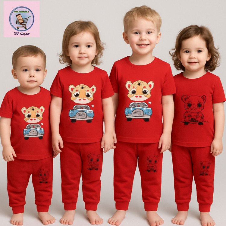 تیشرت آستین کوتاه با شلوار قرمز رنگ سایز ۴ و ۵ و ۶