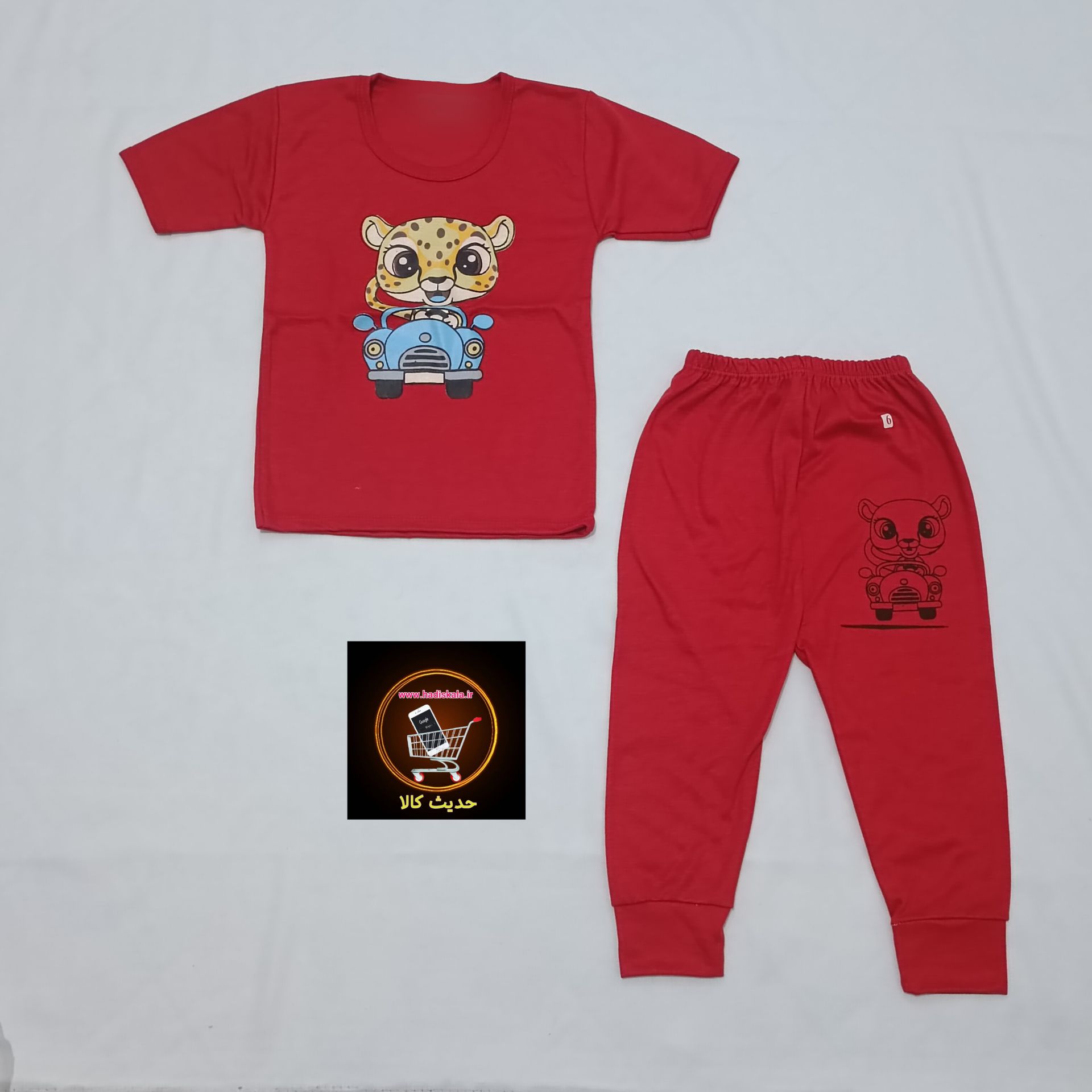 تیشرت آستین کوتاه با شلوار قرمز رنگ سایز ۴ و ۵ و ۶