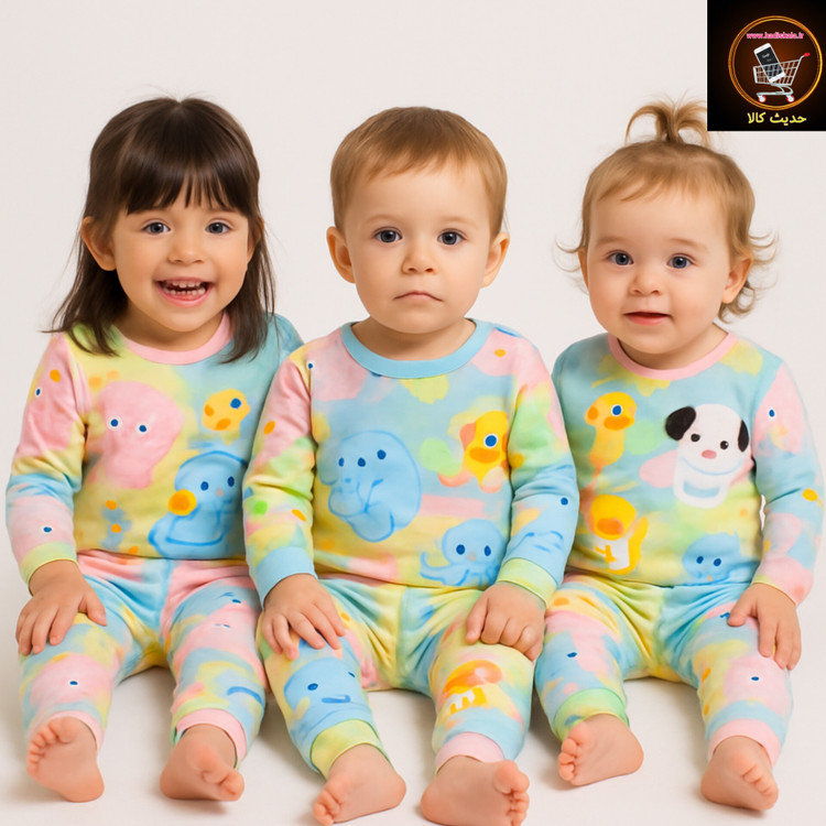 ست پیراهن و شلوار دخترانه عروسکی آبرنگی سایز ۴ و ۵ و ۶