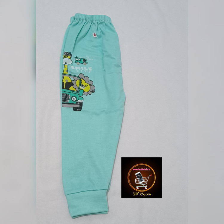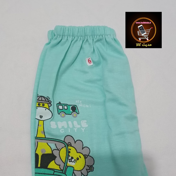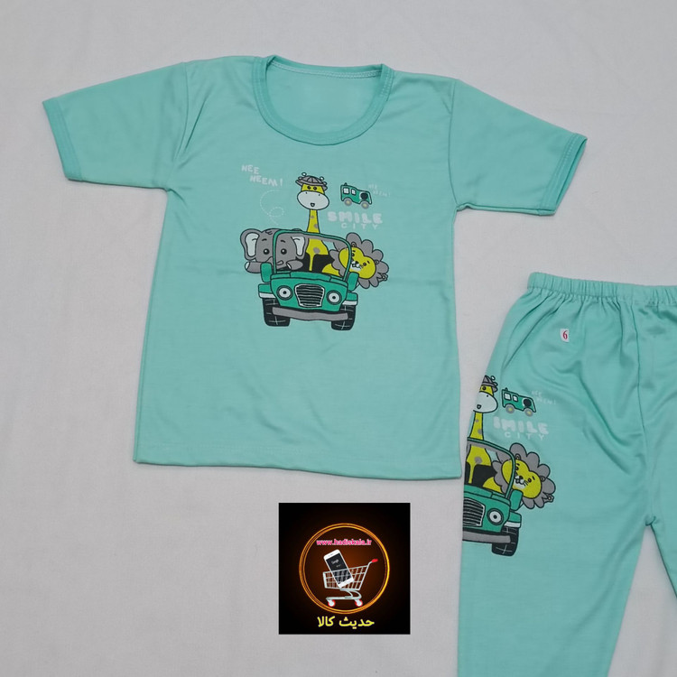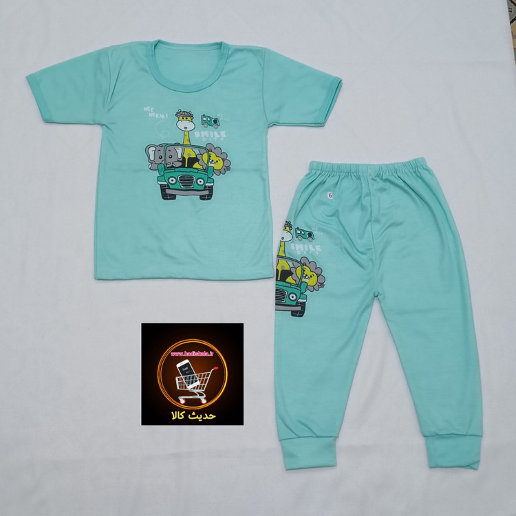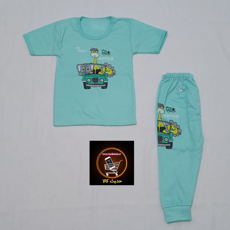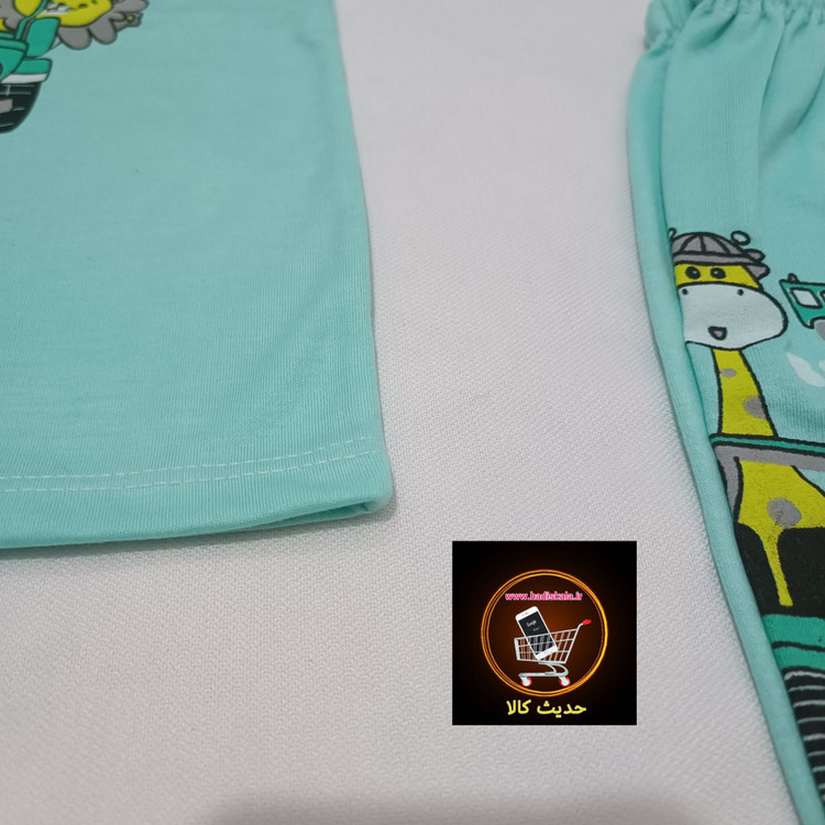 تیشرت آستین کوتاه با شلوار طرح چاپ سبز آبی سایز 4 و 5 و 6