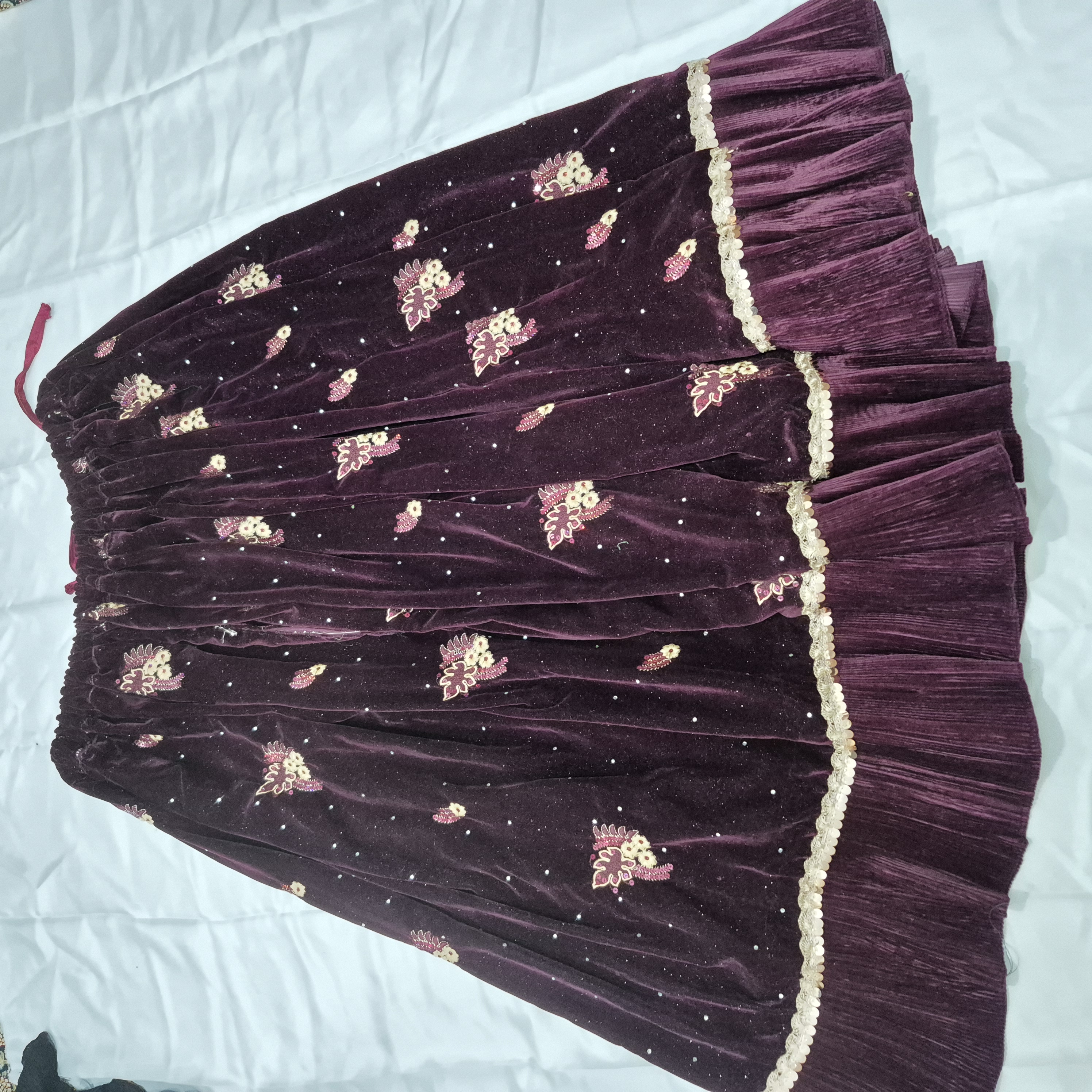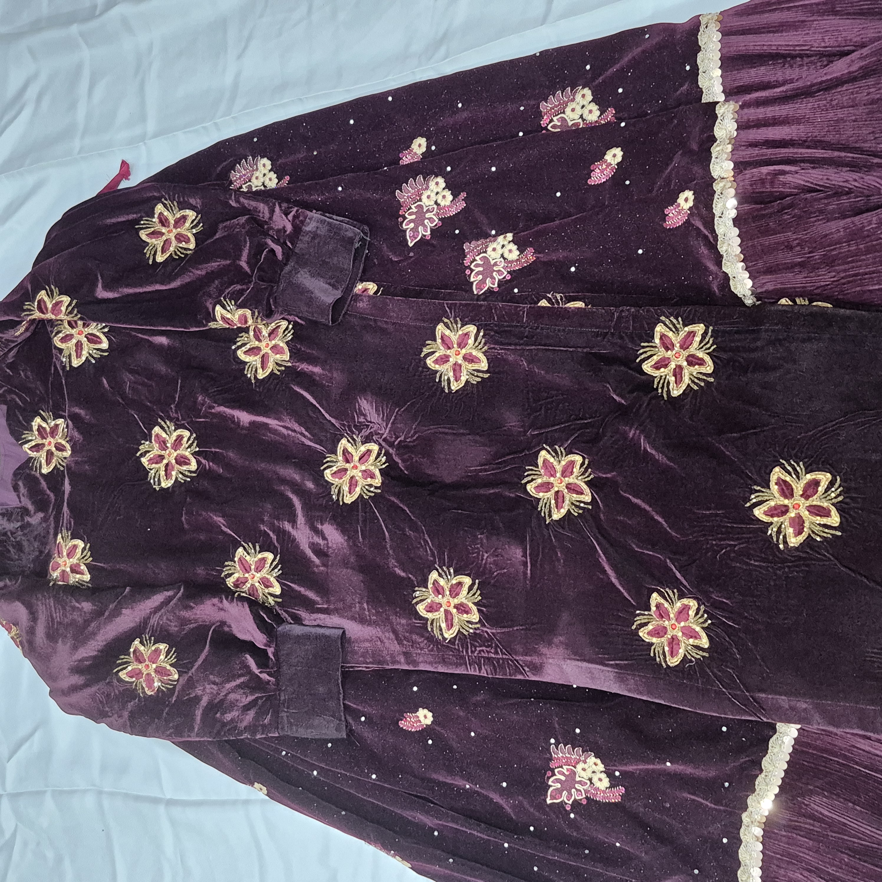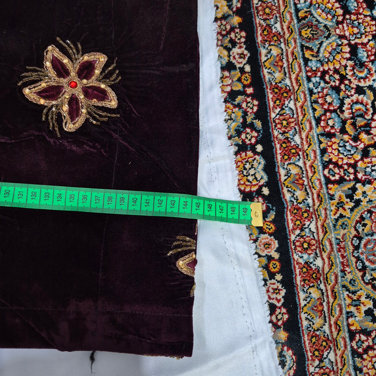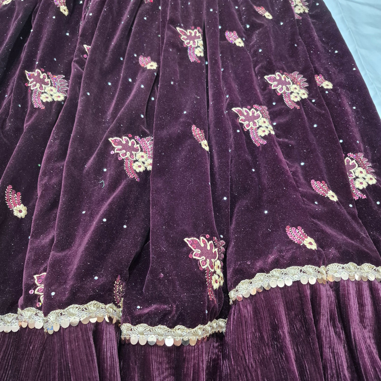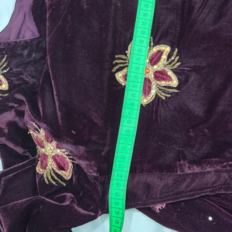 لباس محلی زنانه از جنس مخمل و عنابی رنگ به فروش می رسد.