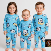 ست پیراهن و شلوار بچگانه مدل آبی رنگ پاندا سایز ۴ و ۵ و ۶